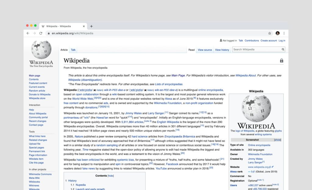 Wikipedia nació como un proyecto complementario de Nupedia, una enciclopedia tradicional revisada por expertos. Pero la historia tomó un giro inesperado: el modelo abierto, inspirado en el movimiento de software libre y en la visión de una web descentralizada, creció a una velocidad imparable.