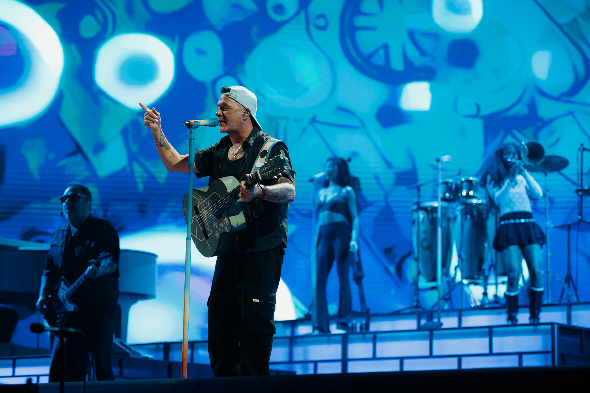 El despliegue técnico fue otro de los protagonistas de estas dos noches históricas. Una pantalla cóncavo-convexa de más de 300 metros cuadrados permitió proyectar visuales diseñadas especialmente para crear una experiencia inmersiva, mientras cámaras distribuidas por todo el recinto —incluso entre el público— reforzaron la sensación de cercanía con el artista.